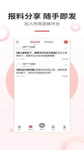 3、支持在线爆料和分享,用户可随时将身边的重要新闻和个人诉求发布到平台,促进互动。