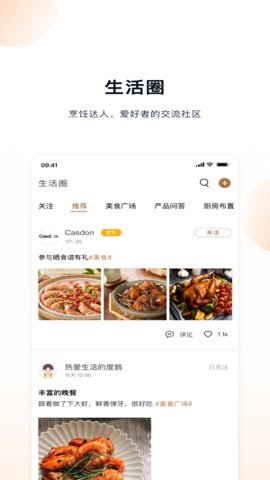 2、生活圈子功能让发布自己的烹饪作品,参与讨论,获取灵感,增强社区的互动性。