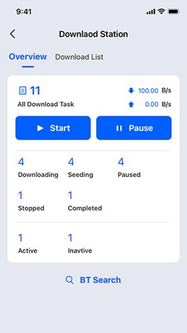 2、Qmanager还支持轻松查看DownloadStation下载中心和备份情况,远端中止或继续下载及备份任务,实现对下载任务的灵活管理。
