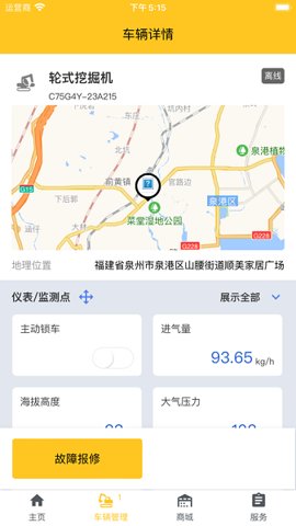 在应用的主界面,选择“车辆监控”功能,系统将自动显示所有挖掘机的实时位置,点击具体车辆查看详细信息。