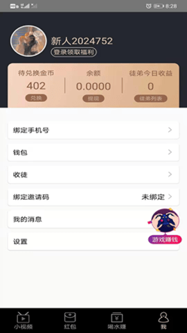 2、个人中心内可以随时查询当前的金币总额、可提现金额以及近期的收益变动记录。