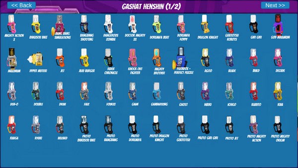 2、打开后可以看到丰富的卡带选择,几乎收录了Exaid系列中的全部骑士道具,无论是TV正剧还是剧场版登场形态,都能在这里找到对应内容。