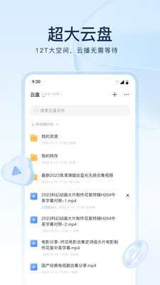 高清在线播放:直接播放云盘内的视频内容,支持倍速播放及高清画质。