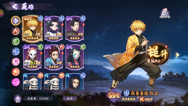 特点:角色易获取,炭治郎与祢豆子触发火焰联动输出,善逸提供闪避保护,悲鸣峪保障续航,适合主线推图及副本挑战