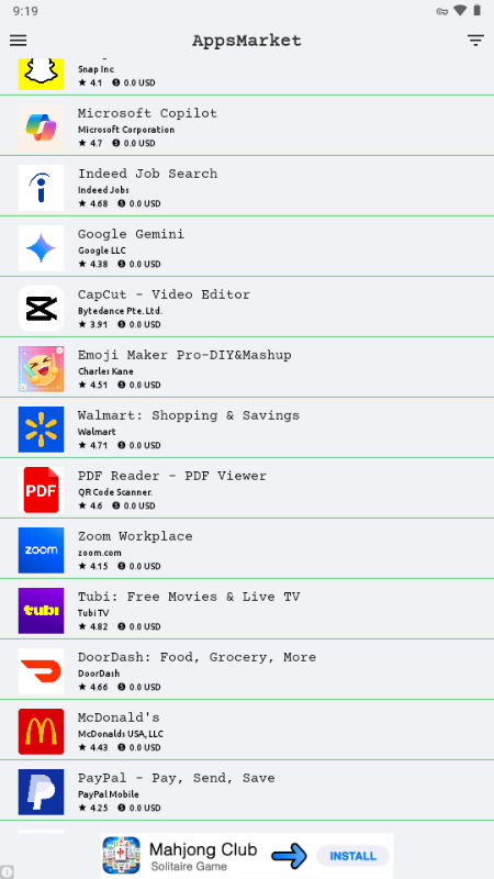 AppsMarket第三方谷歌商店是一款专为安卓用户打造的便捷软件市场,帮助大家在没有谷歌服务的环境下,轻松下载和安装来自谷歌商店的各种应用和游戏。这个平台集合了丰富多样的优质软件,满足不同用户的需求,能为你提供理想的解决方案,提升你的手机使用体验。
