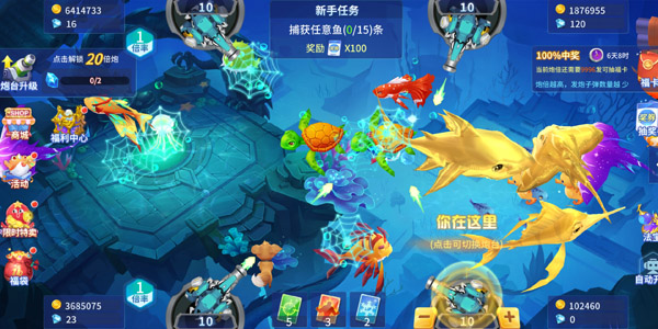 1、炮台系统允许调整发射倍率,不同的倍率对应不同的子弹效果与消耗,高倍率状态下捕获特定鱼类能获得更多回报。