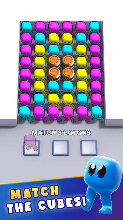 1. 玩家只需通过点击三个相同颜色的小人进行消除,消除后会有新的方块从管道中出现,保持游戏的连贯性。