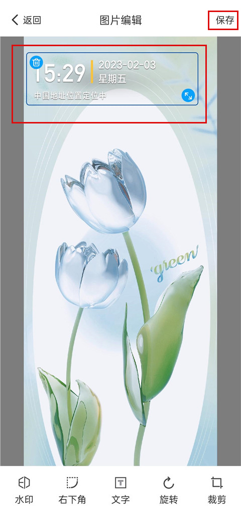 调整满意后,点击【保存】,即可完成带水印的照片制作。