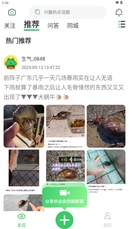 4. 通过主界面上的发布按钮,分享自己的农业经验或问题,与其他用户进行交流,促进互动。