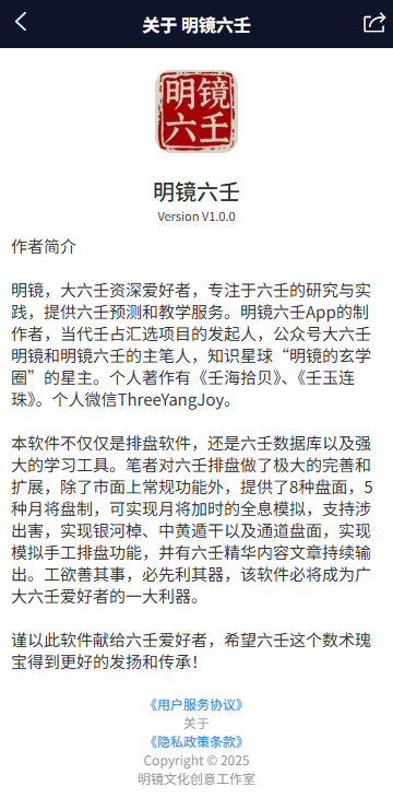 明镜六壬是一款专为安卓手机用户设计的排盘软件,它通过用户的地区、时间和年命等信息,能够精准地进行六壬排盘。它不仅为六壬爱好者提供了强大的排盘工具,还整合了丰富的排盘书籍和学习资源,非常适合排盘工作者和学习者使用。结合先进的deepseek技术,明镜六壬进一步提升了用户的使用体验,让每一位使用者都能感受到传统六壬文化的魅力与现代科技的完美结合。