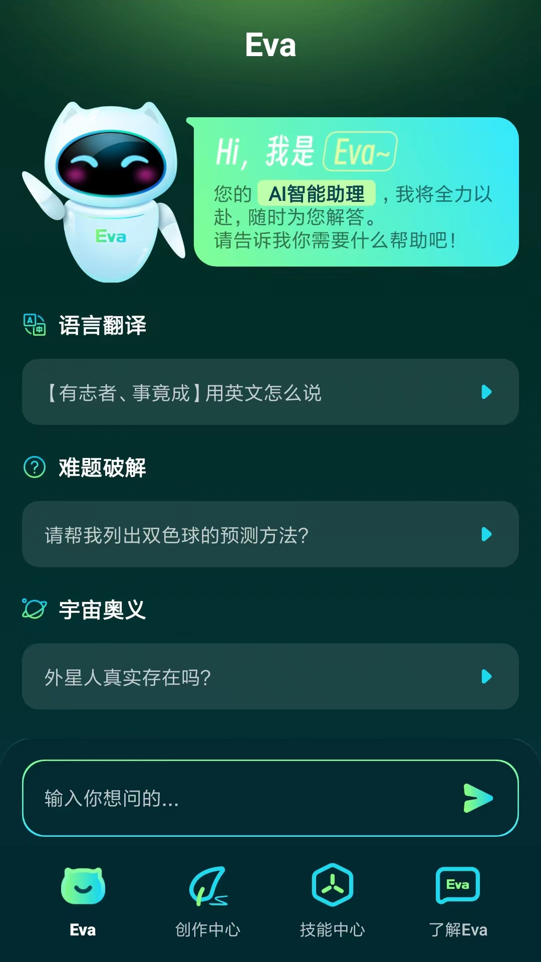 1. 打开Eva AI聊天写作机器人,进入主界面,您将看到一个简洁的输入框。