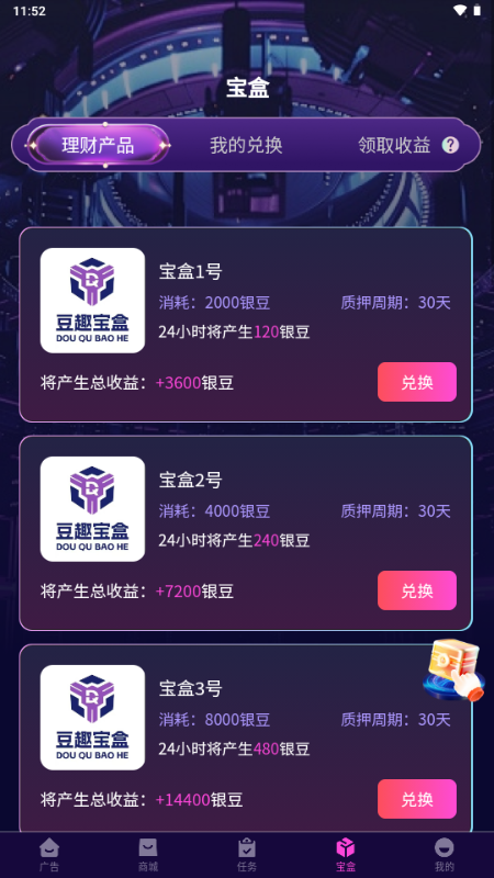 2. 灵活的奖励机制使得用户通过日常签到和观看广告轻松积累银豆,增加收入的机会。