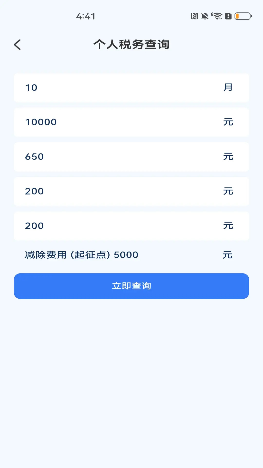 2. 在主界面上,找到个人税务查询选项,点击进入后,根据提示输入个人身份信息,如身份证号等。