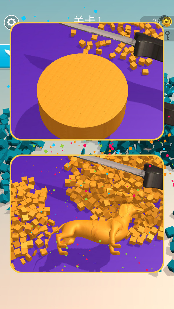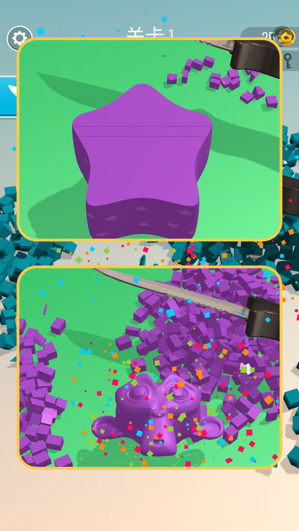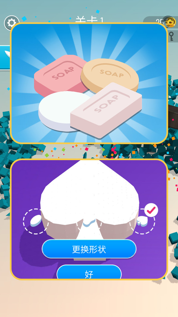 1、雕刻操作:玩家通过触摸屏幕,模拟操作小刀,向下滑动以削去肥皂的一层,逐步雕刻出目标物品。精准的操作是成功的关键。