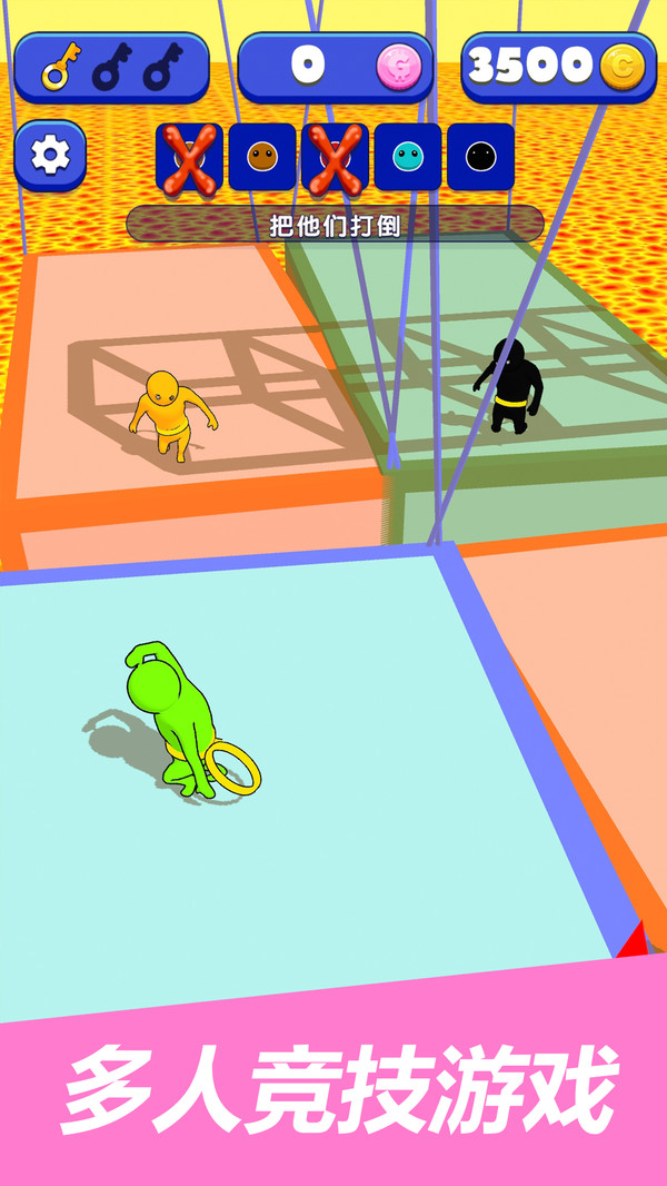 2、利用环境进行战斗,游戏场景中有许多可互动的元素,通过推、打、抓等方式将对手击出赛场,充分发挥战术思维。