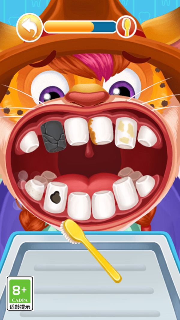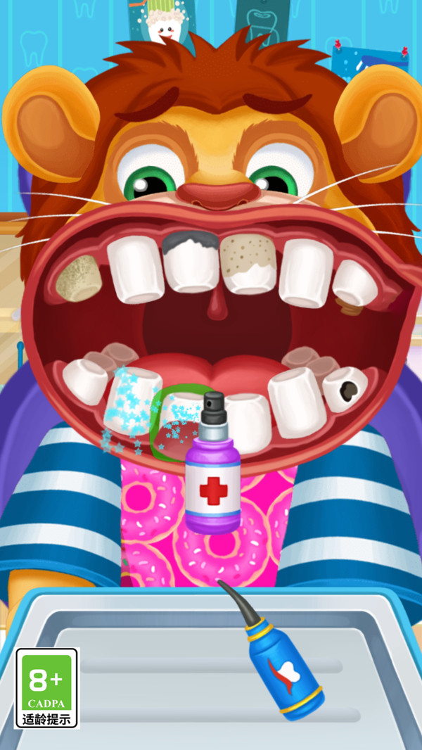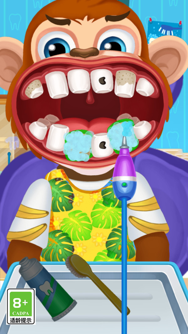 2、在治疗过程中,玩家需要使用各种工具,如牙刷、牙线、洗牙器等,帮助小动物清洁牙齿,去除牙垢和细菌。