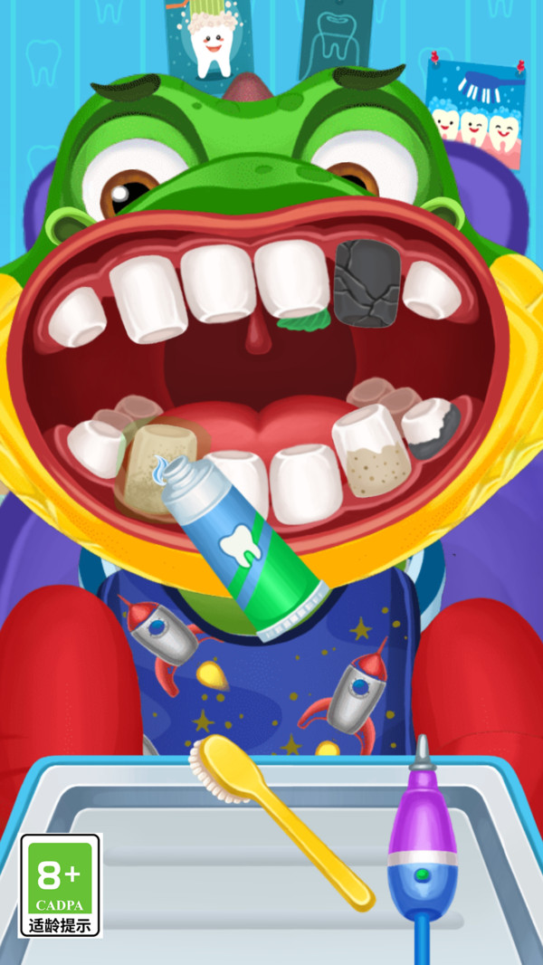 3、独特的治疗方式,玩家不仅可以进行常规的刷牙和洗牙,还可以体验到拔牙和补牙等更具挑战性的治疗。