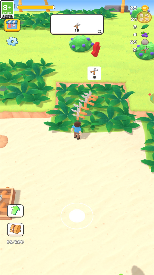 1、资源收集是游戏的核心,玩家需要在岛屿各处探索,收集水果、蔬菜和其他可用物品。每种资源都有其特定的生长周期,玩家需合理安排收集时间。