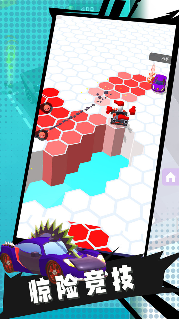 烈焰战车是一款刺激对战赛车游戏。在动态平台上,玩家与对手激烈角逐,每辆车行驶后会让平台瓷砖消失,一旦失误转弯就会出局。通过屏幕操控,精准驾驶、大胆漂移、果断撞击,将对手挤出赛道,成为赢家。游戏不仅考验玩家的驾驶技巧,更需要灵活的策略和快速的反应,玩家在每场比赛中都能体验到心跳加速的快感。无论是单人挑战,还是与朋友组队对战,烈焰战车都能带给你无与伦比的竞速乐趣。