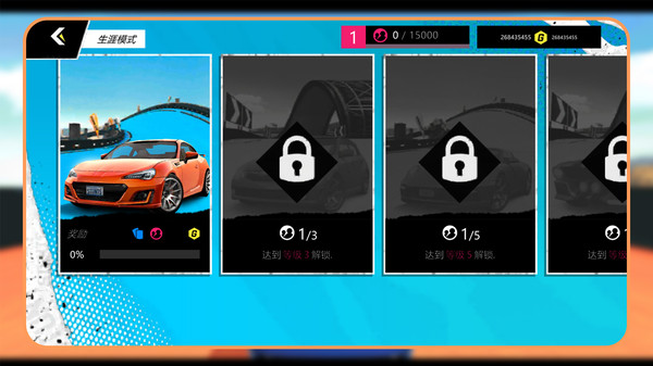 1、在生涯模式中,玩家需要完成一系列逐渐增加难度的关卡。每个关卡都有特定的任务目标,如超车、达到特定速度等,玩家必须在规定时间内完成。