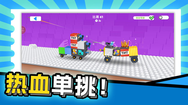 游戏允许玩家自由组合各种零部件,打造独一无二的战斗车。你可以根据自己的喜好选择车身、轮胎、武器等,创造出最符合自己战斗风格的战车。