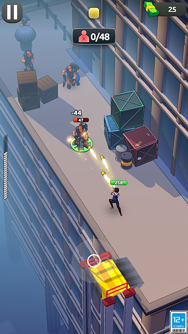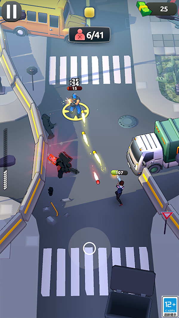 1、在游戏开始时,玩家将被投放到战场中,利用单指控制角色的移动和射击,尽量避免敌人的攻击。