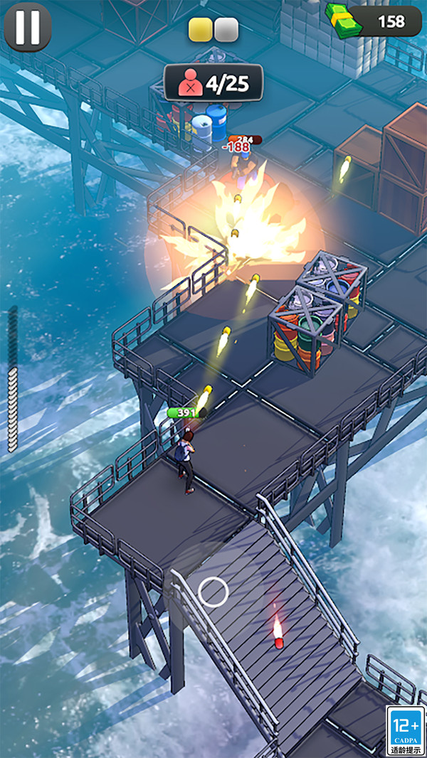 爆裂战场是一款令人热血沸腾的快节奏动作射击游戏。在这个充满挑战与刺激的世界中,玩家将化身为孤胆英雄,面对源源不断的敌人潮汹涌而来。游戏的核心玩法非常简单,玩家只需单指操控,便可以轻松移动和射击,体验到畅快淋漓的战斗乐趣。通过拾取强力武器和道具,不断提升自己的战斗力,挑战各种极具难度的关卡与BOSS,赢取丰厚的奖励。在这个充满紧张感的战场上,勇敢的你准备好迎接挑战了吗?