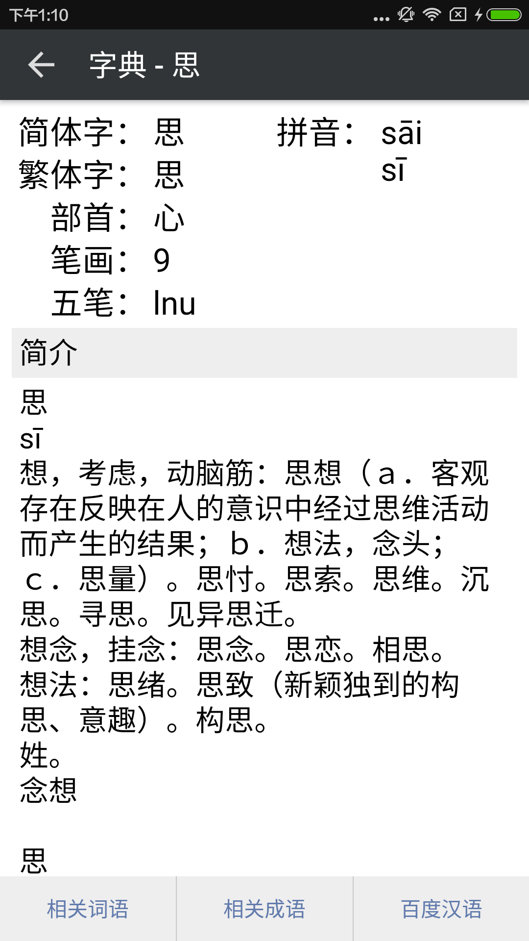 5. 若想查询字典,输入汉字后选择字典搜索选项,获取详细的字义信息。