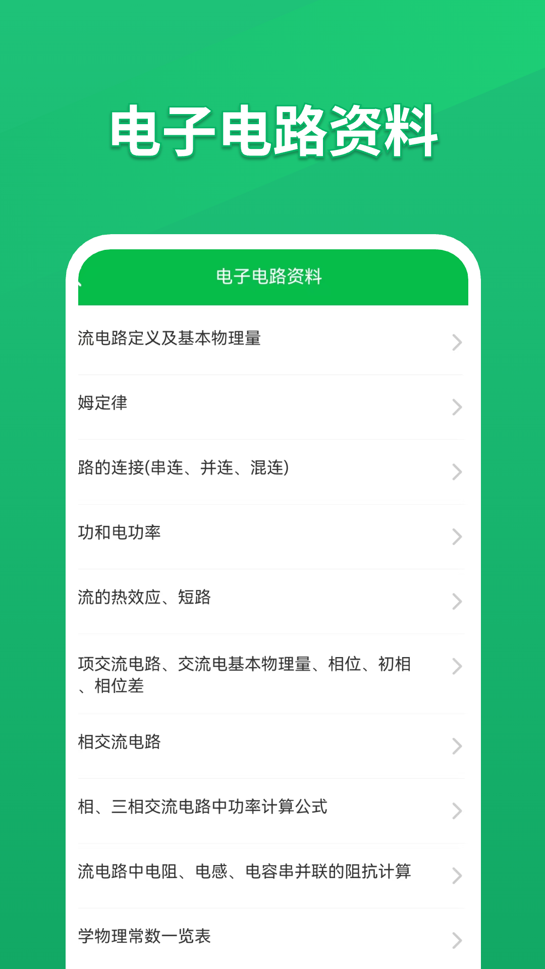 5. 电子电路公式与资料查询:随时查阅电子电路符号、公式和资料,帮助用户更好地理解电路原理。