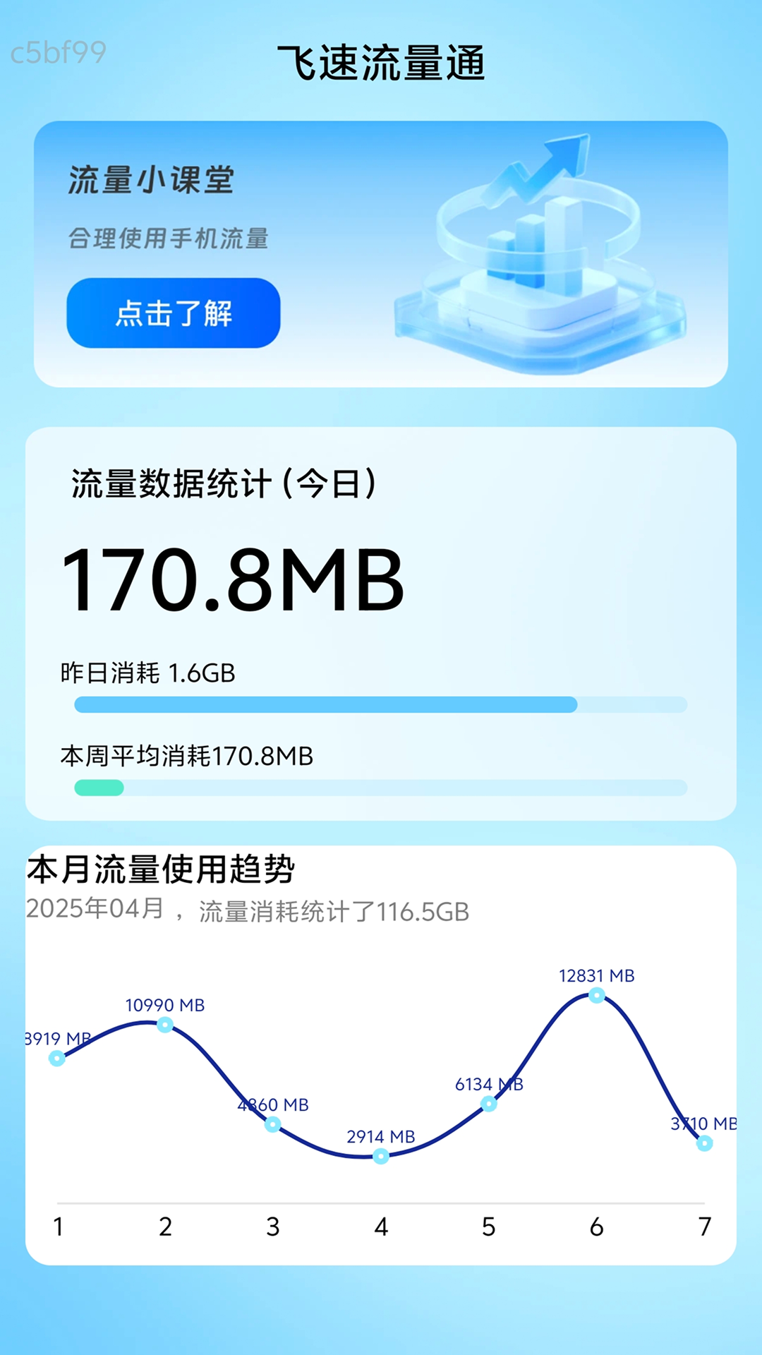 3. 本月使用趋势:智能分析用户的流量使用情况,提前预警可能的超额风险。