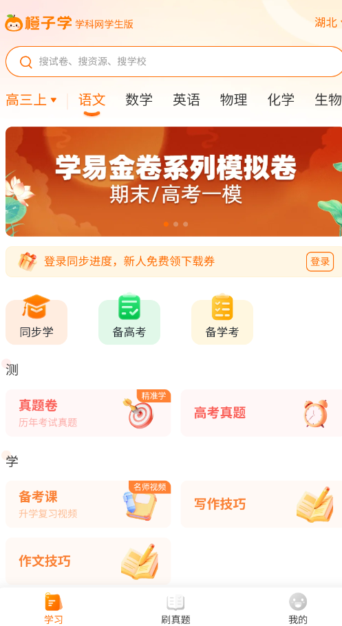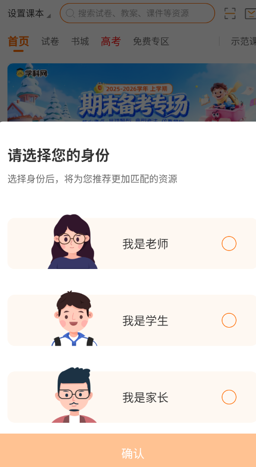 1、首次启动后,在登录页面选择身份为学生或教师,并使用学科网账号完成登录验证。