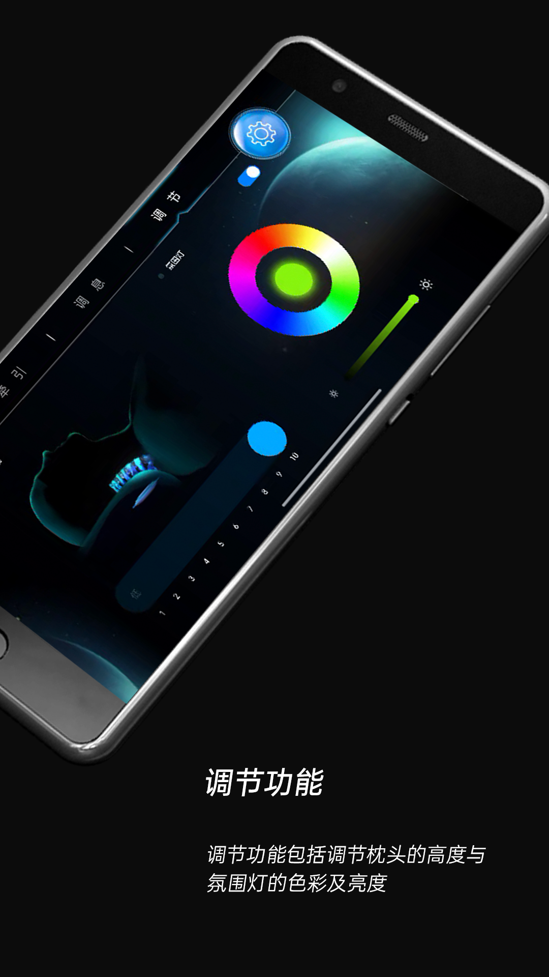 3. 氛围灯控制功能允许用户选择不同的灯光颜色和亮度,以营造出适合睡眠的环境,帮助用户放松心情。