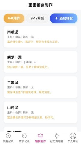 2、辅食食谱库包含多种适合不同月龄婴幼儿的营养食谱,每道食谱均配有详细的制作说明和营养搭配建议。