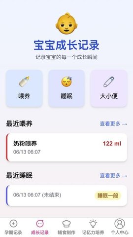 3、成长记录模块支持记录宝宝的日常活动数据,包括喂养时间、睡眠时长等,方便持续关注发育状况。