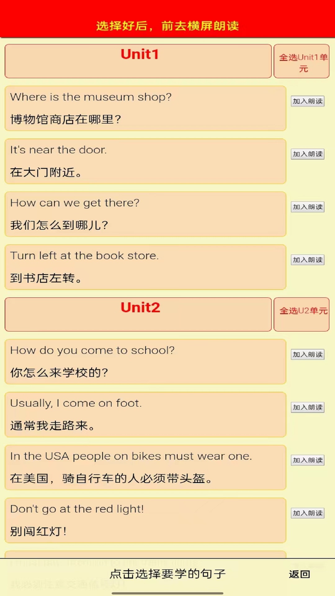 2. 选择需要学习的课文或单词,点击进入相应的学习模块。