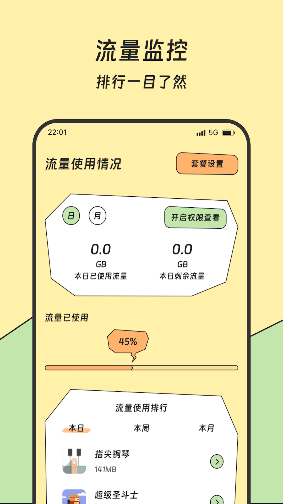 流量监控:实时监测用户的流量使用情况,提供详细的流量统计数据,帮助用户了解日常流量消耗。
