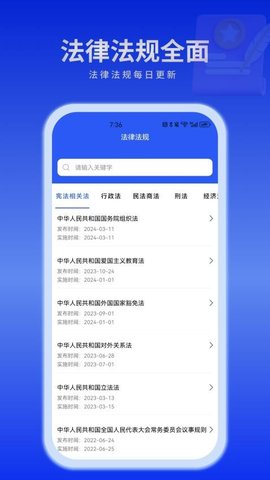 1、首页会看到新法速递和几个主要分类入口,比如民法典、劳动争议。
