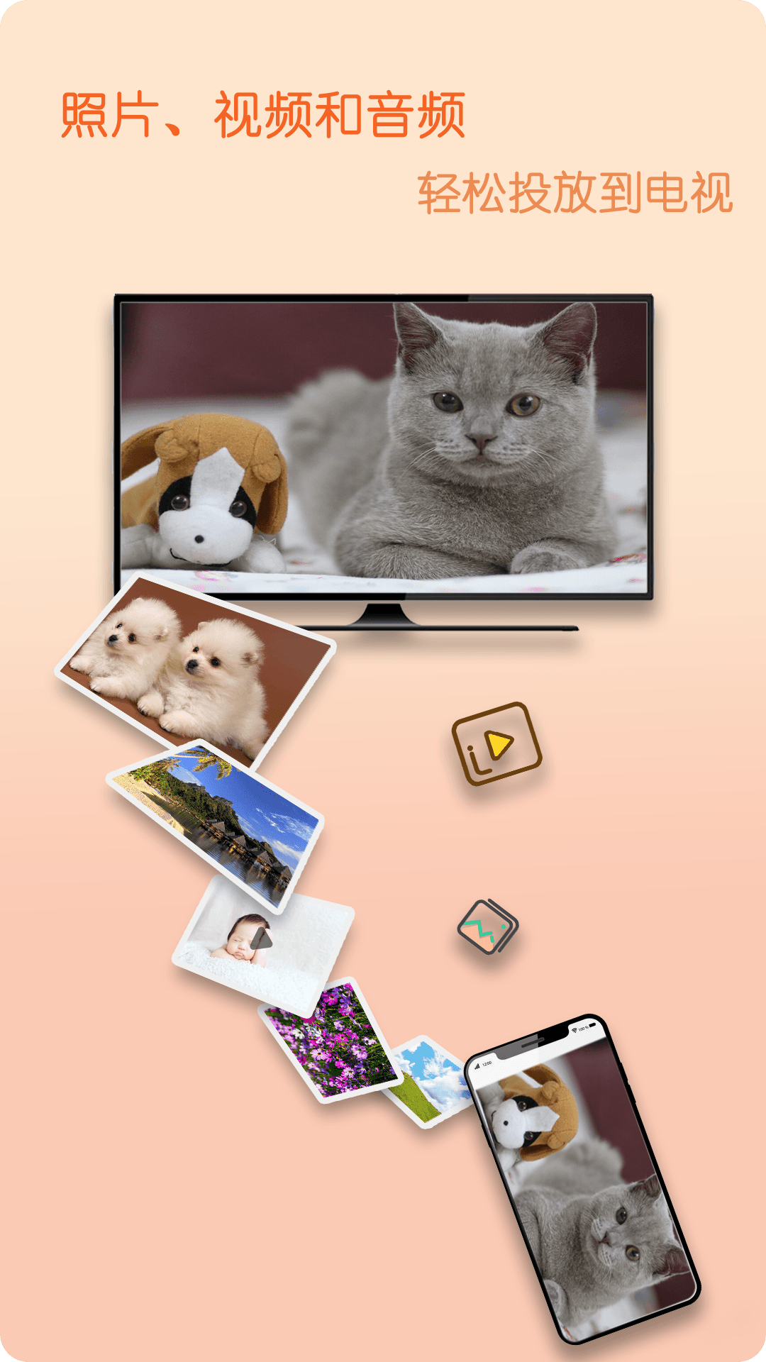 2. 支持多种文件格式,轻松将视频、音乐、图片等各种类型的文件投屏到大屏幕上。