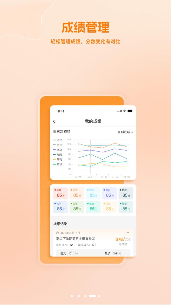 2、通过记录历次测验与考试的成绩,生成趋势图表,使知识掌握程度的变化清晰可见。