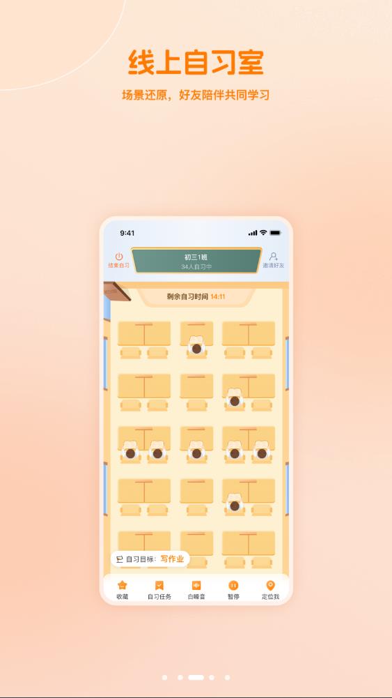 2、线上自习室模拟真实学习环境,可看到其他在线学习的同伴,有助于营造专注的学习氛围。