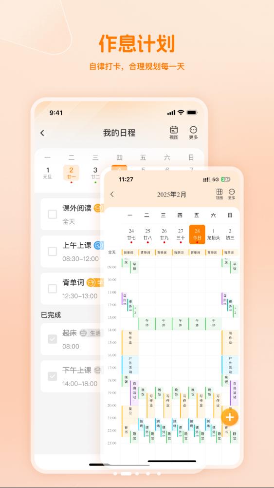 3、进入我的日程板块,手动添加或修改每日固定的学习任务,例如背诵课文或完成数学练习。