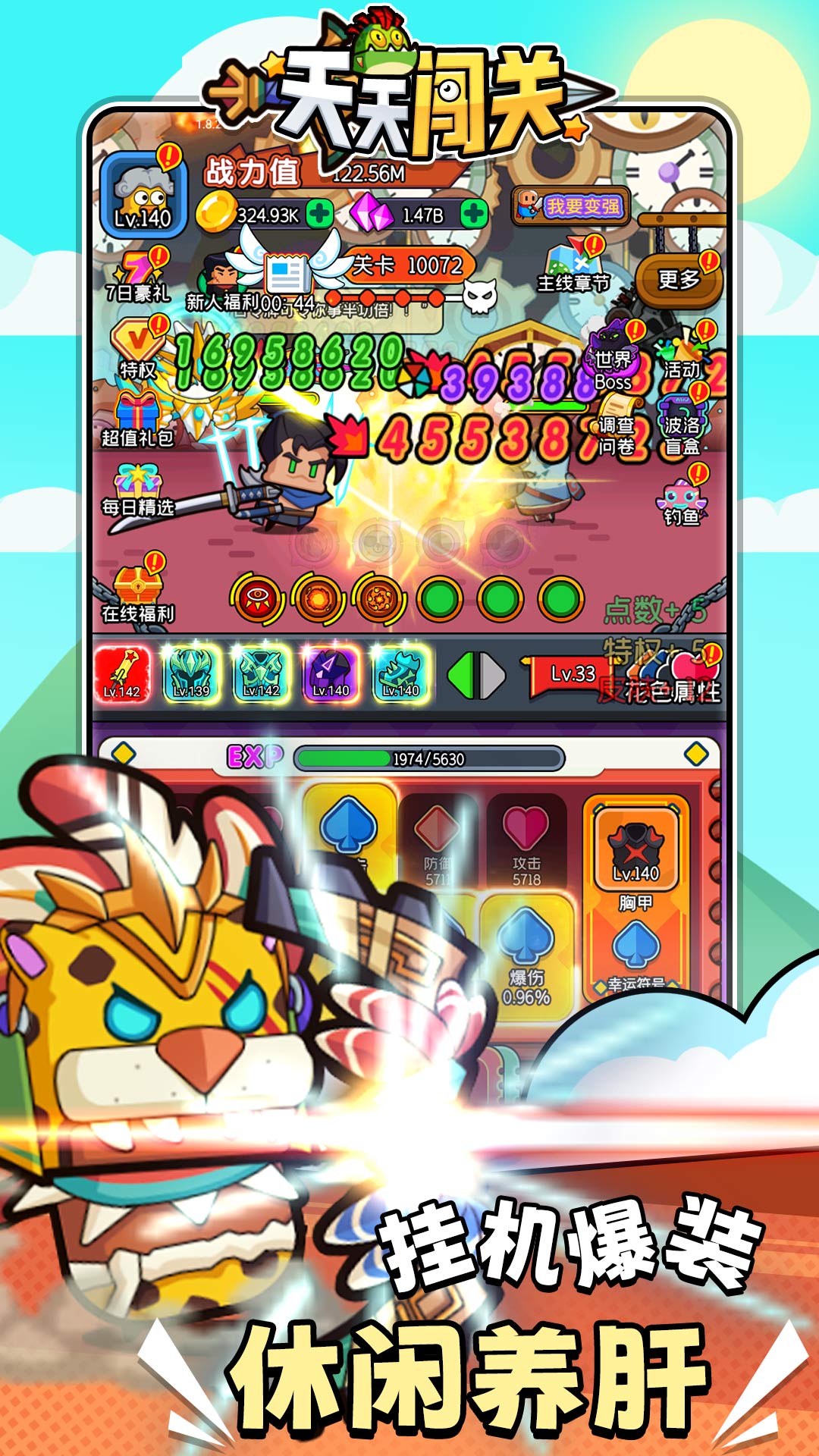 天天闯关不仅是一款简单的闯关游戏,更是一次激发玩家潜力的冒险体验。游戏将传统的卡牌元素与现代的放置玩法相结合,创造出一种全新的游戏模式。玩家不仅要依靠运气获取强力装备,还需要策略性地选择适合自己的卡牌,合理搭配,才能在激烈的战斗中占得先机。每一关都设计得独具匠心,既有挑战性又不失趣味性,让玩家在不断的尝试中收获成就感。无论是新手还是老玩家,都能在这个充满惊喜的世界中找到属于自己的乐趣。