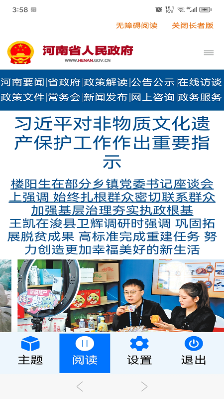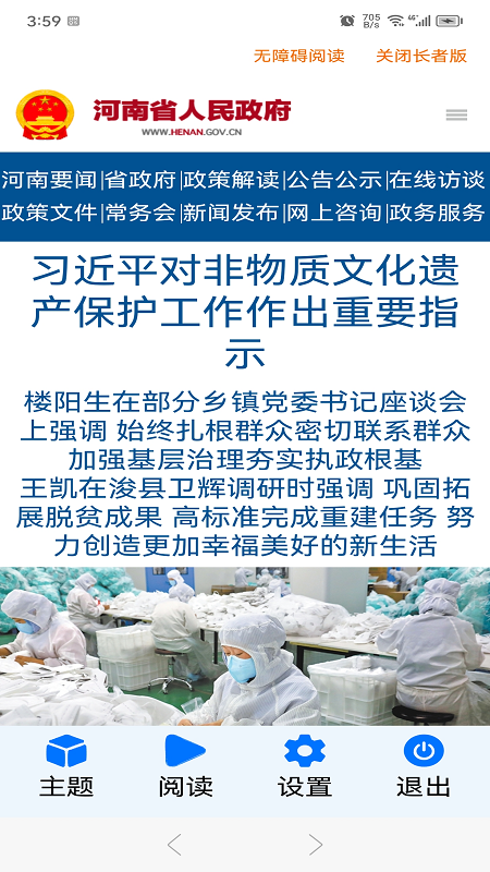 1. 要闻栏目提供河南省政府的最新重要新闻,帮助用户及时了解政府动态。