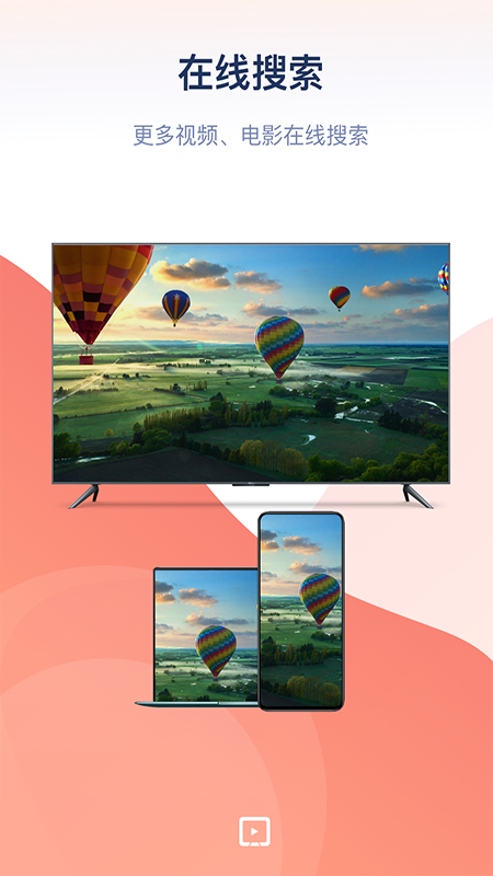1、在线视频投屏,通过软件将各大视频网站的内容直接投放到大屏幕上,享受更大视野。