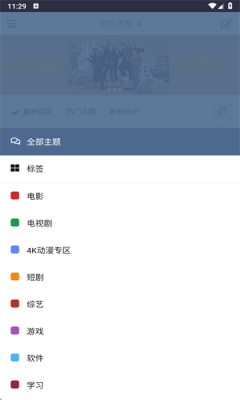 1、打开盘谷资源社后,用户会看到一个清晰的主界面,左上方有一个三横杠的菜单图标,点击它即可展开侧边菜单。