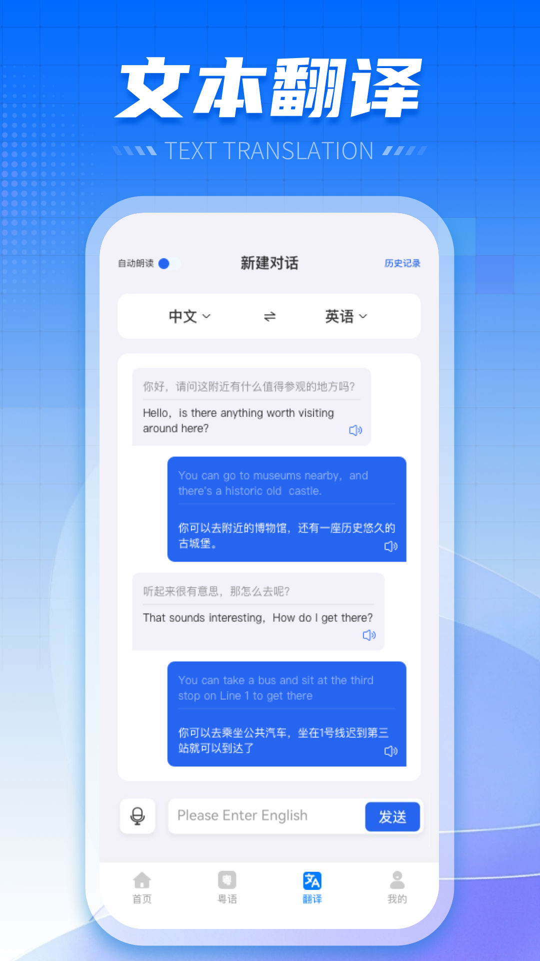 4. 点击翻译模块,选择语音或文字翻译,输入或录入您想翻译的内容。