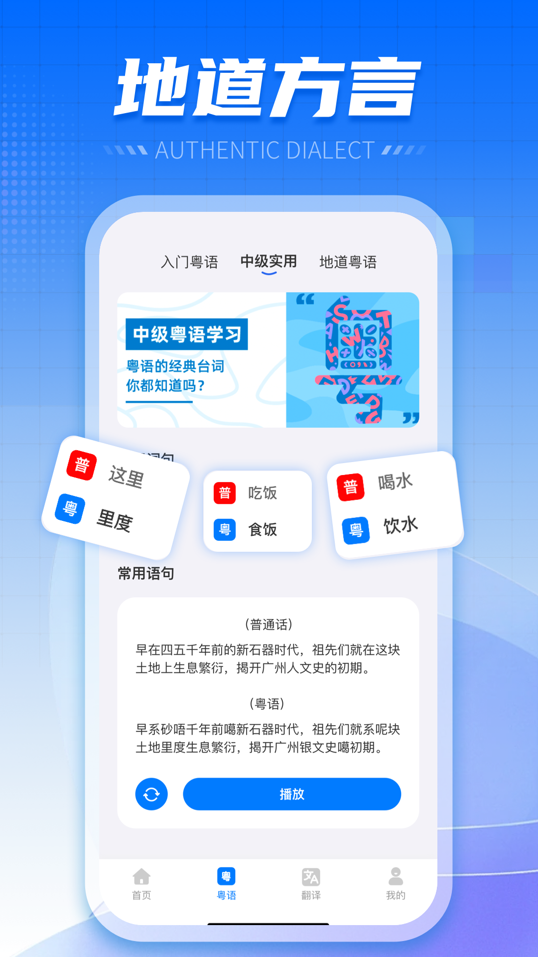 1. 粤语对话学习模块,提供实用的日常对话示例,帮助用户快速掌握常用句型。