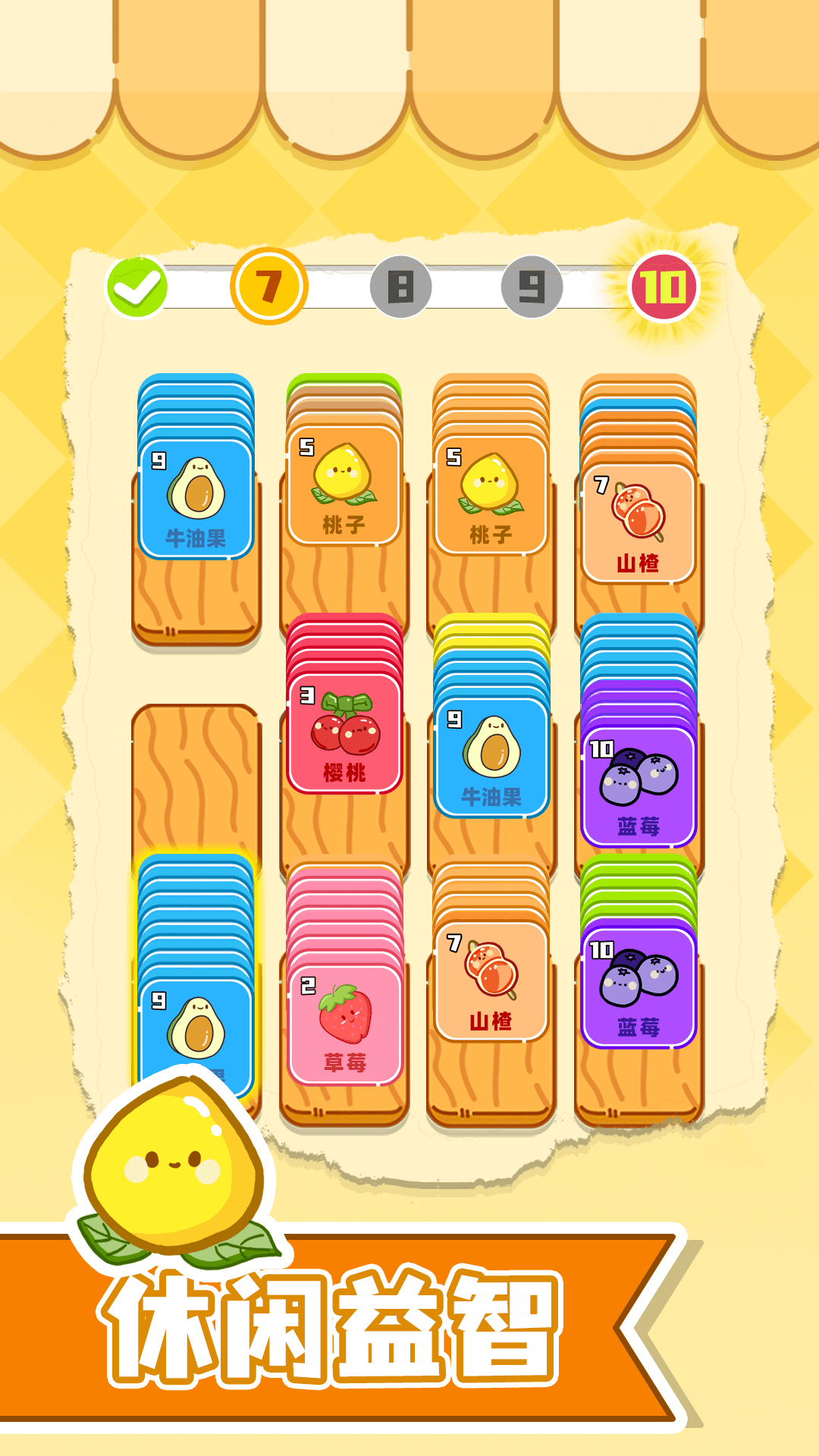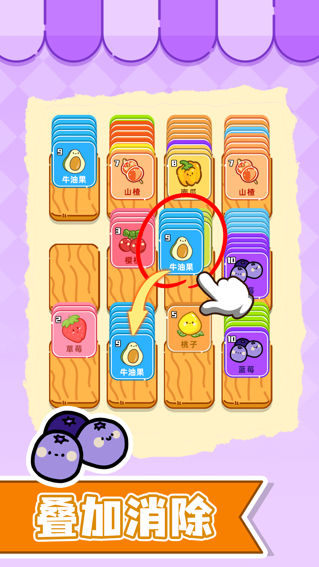 1、玩家需要通过点击屏幕来放置水果骨牌,填满卡槽后即可生成新的骨牌,继续进行消除。
