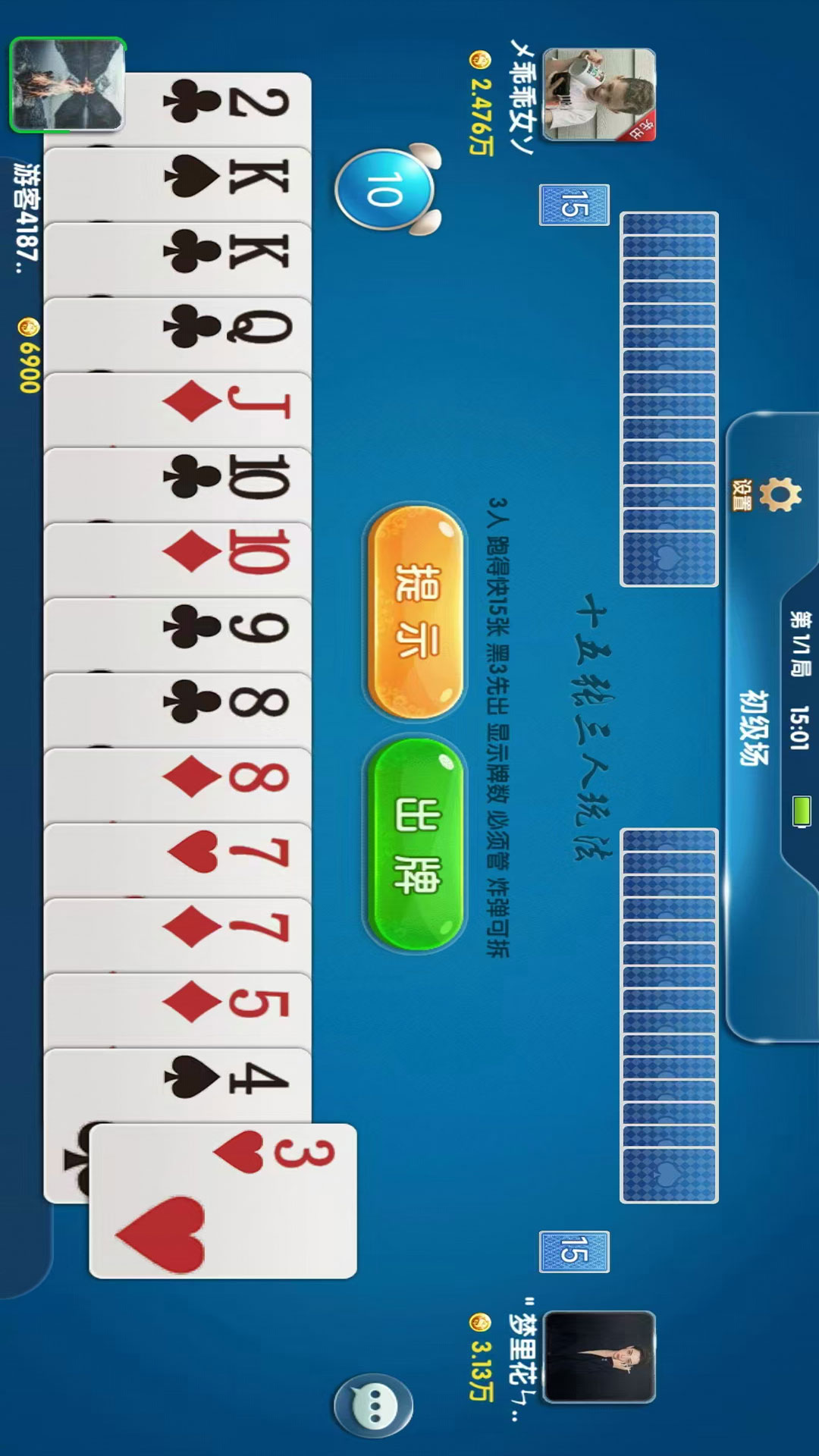 1、游戏开始时,玩家需要根据手中的牌合理选择出牌顺序,优先出掉大牌可以有效压制对手。