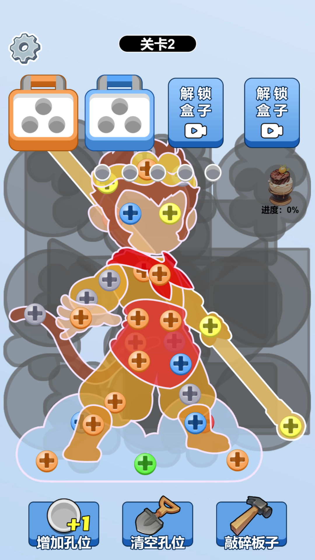 2、在每一关卡中,玩家需要收集特定数量的螺丝,只有完成目标后,才能进入下一个关卡,增加了游戏的挑战性。
